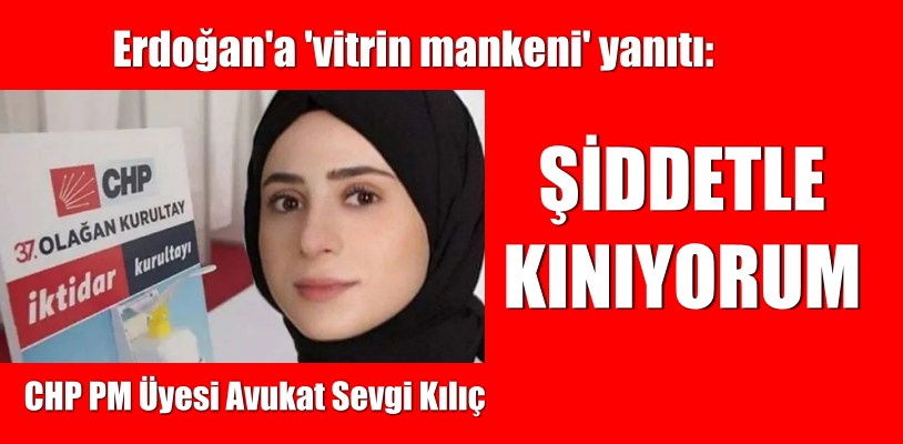 CHP PM Üyesi Sevgi Kılıç, Cumhurbaşkanı Recep Tayyip Erdoğan’ın CHP’de yer alan başörtülü kadınlar için ‘vitrin’ benzetmesi yapmasına tepki gösterdi. Kılıç, Erdoğan’a seslenerek, “Biz kadınlara yapmış olduğu hakareti şiddetle kınıyorum” dedi.
