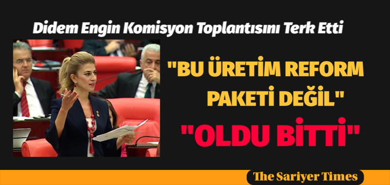 Didem ENGİN, muhalefet milletvekillerinin yeni maddelerle ilgili konuları araştırma ve inceleme imkânı olmadan çok sayıda farklı kanunla ilgili son dakika önergeleri getirilmesine sert tepki göstererek “Konuyla hiç ilgisi olmayan özelleştirmelerle ilgili önerge geliyor, Kooperatif Kanunu’yla ilgili önergeler geliyor ve biz şimdi, burada ana konumuzla hiç ilgisi olmayan konuların getirilme nedenini anlamaya çalışacağız. O kadar gayriciddi bir çalışma üslubu ki, o kadar gayriciddi bir çalışma üslubu, altına basa basa söylüyorum. Bu mudur yani? Bu milletvekillerinin çalışma üslubunun, Komisyonun çalışma üslubunun bu mu olması gerekiyor? İki yıldır ben milletvekiliyim ve iki yıldır Komisyon’a gelen tüm kanun tasarılarında iktidar partisi son dakika önergeleri, gece yarısı gelen önergeleri ile aynı tutumu sergiliyor. Bu Komisyonun bir çalışma disiplininin olması gerekir. Siz bu disiplini yok ediyorsunuz” sözleriyle Bilim Sanayi Teknoloji Bakanı’nı ve AKP’li milletvekillerini eleştirerek, komisyon toplantısını terk etti.