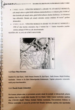 Fatih Ormanı ile ilgili yapılacak uygulama projeleri ve imar planı tadilatları için gerekli Orman Bakanlığı, İstanbul Valiliği, İstanbul 2 Numaralı Kültür Varlıklarını Koruma Bölge Kurulu Müdürlüğü ve diğer kurumların kurum görüşleri ve onayları, revizyon imar planları, peyzaj projeleri kurum yazıları, tabiat parkı kiralama sözleşmesi bulunmaktadır. Ele geçirilen rapor incelendiğinde, daha önce bungalov/kamp alanı görünümlü olan kamping alanı; ilgili plan notları ile 300-350 metrekarelik 108 adet villanın yer aldığı bir alana dönüşmektedir. Ayrıca daha önce ortaya çıkan kitapçıkta da görüldüğü üzere kır lokantası adı altında görünen alanlarda ise; lüks restoranlar yapılması öngörülüyor. Ayrıca çok amaçlı salon çevresinde yapılması düşünülen günübirlik kullanım alanına dair teknik detaylar ise rapora eklenmiş durumda.