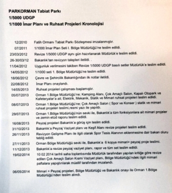 Gazetecileronline’nin haberine göre, Belirtilen bu plan notlarına, Fatih Ormanı-Park Orman Tabiat Parkı Projesi kapsamında alt ölçek kentsel tasarım uygulama projeleri yapılmadan herhangi bir uygulama yapılamayacağı açık. Ancak ele geçirilen raporda bu plan notunu karşılayacak hiçbir bilgi, belge ya da kronoloji içerisinde bir adım görülemiyor. Uzun Devreli Gelişim Planı’na Orman ve Su İşleri Bakanlığı “Olur” dedi, Revizyon İmar Planları Çevre ve Şehircilik Bakanlığı’ndan onay bekleniyor.