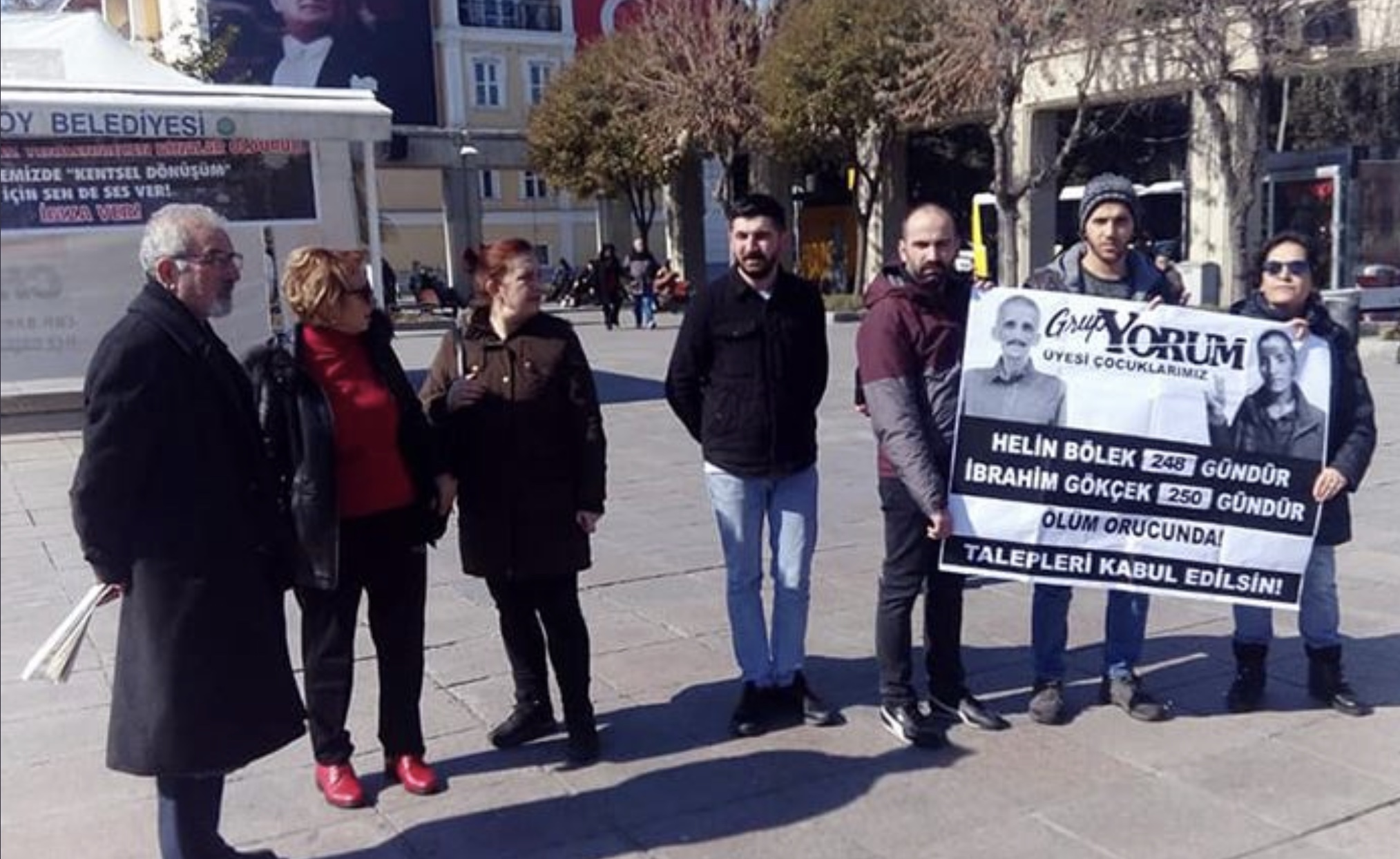 Bakırköy Özgürlük Meydanı’nda ölüm orucundaki Grup Yorum üyeleri Helin Bölek ve İbrahim Gökçek’in taleplerinin kabul edilmesi için eylem yapan 5 kişi gözaltına alındı. Gözaltına alınanlar arasında Helin Bölek’in annesinin de yer aldığı bildirildi.