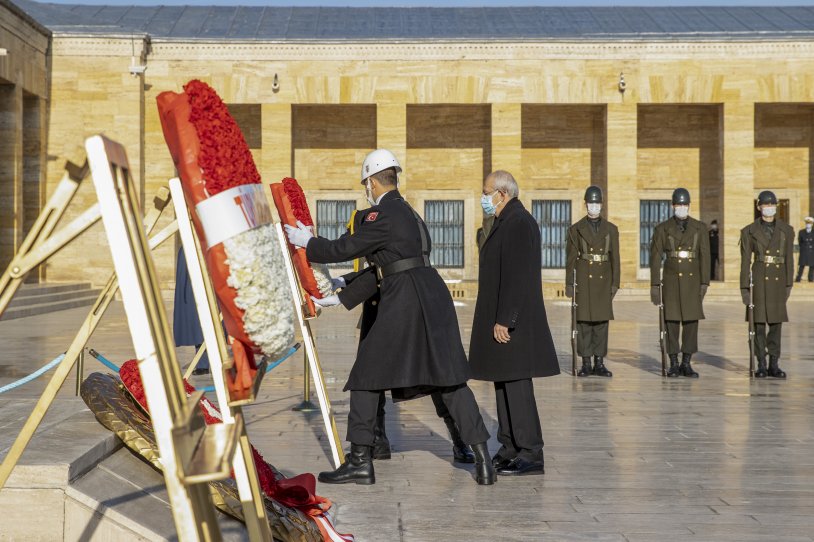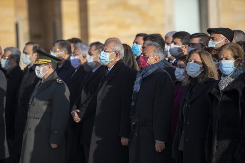 İsmet İnönü’nün öz geçmişinin okunmasının ardından Cumhurbaşkanlığı, Türk Silahlı Kuvvetleri (TSK), CHP ve ailesi adına kabre çelenk bırakıldı.