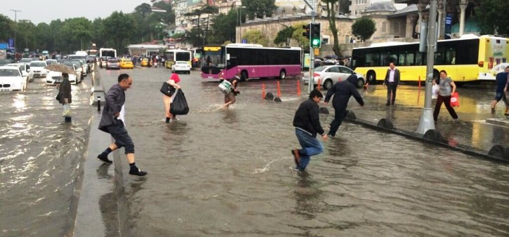 İstanbul’da saat 10.00 sıralarında sağanak yağış etkili oldu. Yağışın en etkili olduğu yerlerden biri de Üsküdar sahiliydi. Yağmur nedeniyle sahil yolu nehire dönüştü. Dize kadar çıkan su döküldüğü yerde karayla denizin birleştiği görüntüsü verdi. Sahil yolunda hem yaya hem araç trafiği felç oldu. Araçlar suyun yüksekliğinden dolayı olduğu yerde kaldı. Hareket edemeyen araçların sürücüleri de arabalarının içinde beklemek zorunda kaldı.