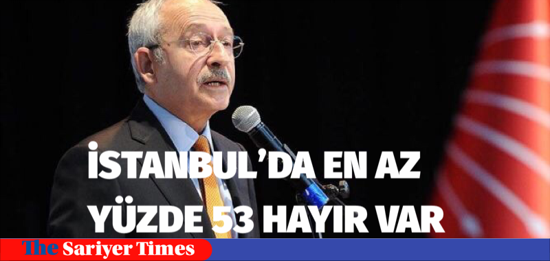 CHP Genel Başkanı Kemal Kılıçdaroglu, geri donüşüm işçileriyle bir araya geldi. Kılıçdaroğlu : Anketlere göre İstanbul’da hayır var. En az yüzde 53 hayır var. Korkutuyorlar, baskı kuruyorlar, istedikleri kadar para harcasınlar, istedikleri kadar yeri göğü evetle doldursunlar.