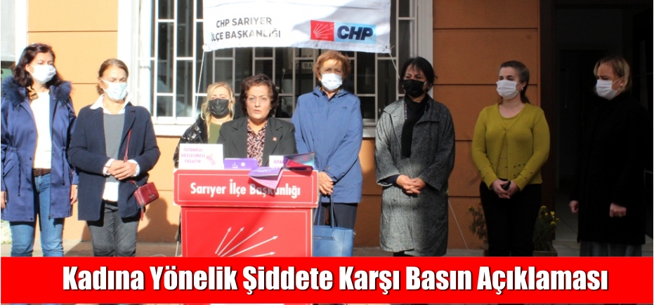 25 Kasım Kadına Yönelik Şiddete Karşı mücadele günü nedeniyle CHP’nin tüm kadın kolu başkanlıklarında eş zamanlı yapılan basın açıklamalarında CHP Sarıyer adına basın metnini İlçe Kadın Kolu Başkanı Sunay Sevinç okudu.