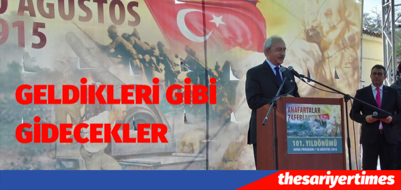 Mehmetçiğin, omuzunda silahı, olabildiğince beslenme olanağı sağlandıktan sonra düşmana saldırmak için emir beklediğini anlatan Kılıçdaroğlu, “Binlerce kişi, binlerce evladımız şu anda bu topraklarda yatıyor. O nedenle bu topraklar şehit fışkıran topraklardır. Kefenli, kefensiz yatan binlerce evladımız var burada. Bunları aradan 101 yıl geçmesine karşın unutmadık, unutturmayacağız. Çocuklarımıza, torunlarımıza da söyleyeceğiz. Bütün konuşmalarımda söyledim. Cumhuriyet bize altın tabak içerisinde sunulmadı. Sınırlarımız birileri tarafından belirlenmedi, cetvelle çizilmedi. Her kilometresinde, her metresinde, her santimetresinde alınteri var, kan var, gözyaşı var. Cumhuriyetimiz bu kadar değerlidir. Cumhuriyetimizi sonuna kadar savunmakta hepimizin görevidir” diye konuştu.