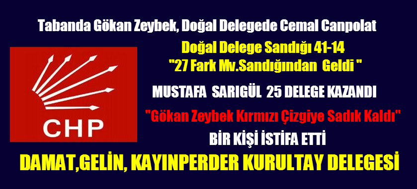 Doğal delegelerin oy kullandığı bir sandık vardı. Burada milletvekilleri, PM ve MYK üyeleri oy kullanıyor. Oylar 41-14 Gökan Zeybek aleyhine çıktı. Demek ki, Canpolat 27 oy farkını bu sandıkla yaptı.