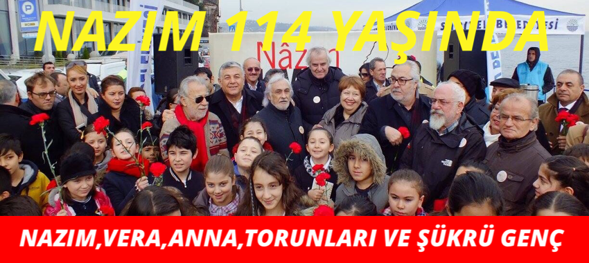 Sarıyer Belediye Başkanı Şükrü Genç Nazım Hikmet’in 114 yaş pastasını kızı ve torunları ile birlikte karadeniz açılırken Teknede birlikte kestiler..