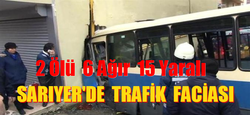 Sarıyer –Kocataş- Hacıosman minibüsü Kozdere’den aşağı inerken kontrolden çıkarak virajı alamadığından bir işyerinin duvarına çakıldı. İşyeri önünde bekleyen 2 vatandaş öldü ve araç içindeki 15 kişi’den 6 ağır yaralandı. Yaralılar hastanelere kaldırıldı.