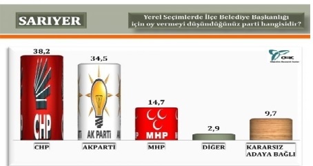 “Sarıyer de CHP’nin yine kamuoyu yoklamalarında 38.2 alması rakibi AKP’ nin 34,5 alarak CHP ‘nin 2009 seçimlerinde yapılan anketlerden daha yüksek çıkması ne ile bağdaştırılacaktır.”