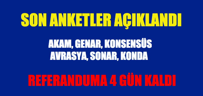 Anketler son açıklamaları yaptı.Anar, Genar, Avrasya, Konsessus, AKAM, Sonar, KONDA..
