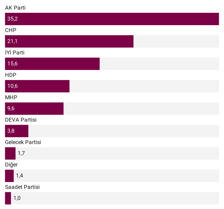 Ali Babacan’ın kurduğu DEVA Partisi’nin oy oranı yüzde 2,3 iken Gelecek Partisi’nin oy oranı ise yüzde 0,7 olarak belirlendi.