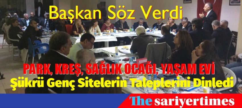 Medya Kent sitesinde gerçekleştirilen 20 Sitenin katılımı ile oluşturulan Zekeriyaköy Siteler Platformu toplantısına Sarıyer Belediye Başkanı Şükrü Genç, Başkan yardımcıları Gökan Zeybek, İsmail Erdem, Sevgi Atalay, Semra Kartal ve Meclis başkan Vekili Hüseyin Çoşkun ile Meclis üyeleri ve tüm birim müdürleri katıldılar.