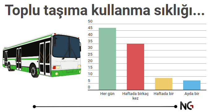 Araştırmada çıkan sonuca göre katılımcıların yarısı her gün toplu taşıma aracı kullanıyor. Her 10 kişiden 3’ü ise haftada birkaç kez toplu taşıma ile seyahat ettiğini belirtiyor. Bu kadar yoğun kullanılması da toplu taşıma şoförlerinin sorumluluklarının önemini artırıyor. Bu anlamda katılımcılara toplu taşıma araçları ile ilgili bazı sorular yöneltildi. Alınan geri dönüşlere göre İstanbul halkının yarısı taksicilere güvenmiyor ve gidilecek yolu uzatma, taksimetre ayarıyla oynama gibi konularda aldatılacağını düşünüyor. Bu tür kalabalık şehirlerde trafiğin akışını sağlayabilmek için toplu taşıma kullanımı oldukça önemliyken, şoförler tarafından bu güven ilişkisinin zedelenmemesi kritik önem taşıyor. Çünkü araştırmada çıkan sonuca göre özel araca sahip olan 10 kişiden 4’ü haftada sadece birkaç defa toplu taşıma aracı kullandığını belirtiyor.