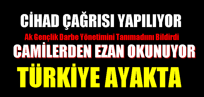 Camilerden ve belediyelerden çihad çağrısı ve demokrasiye sahip çıkma çağrısı yapılıyor. Sarıyer’de saat 01.20 ezan okunuyor ve çihat’a çağrı yapılıyor. Ak gençlik darbe yönetimini tanımadığını bildirdi.