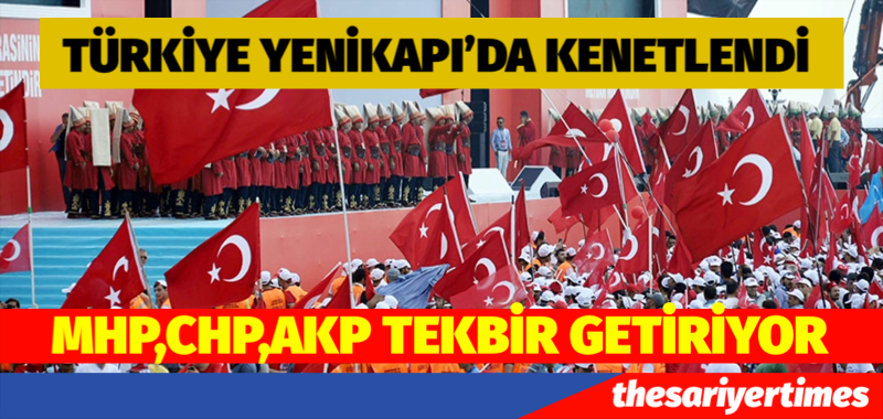 Sahneden anonsla birlikte, alanda bulunan Mhp,Chp,Akp li vatandaşlarımız hep birlikte tekbir getiriyorlar.