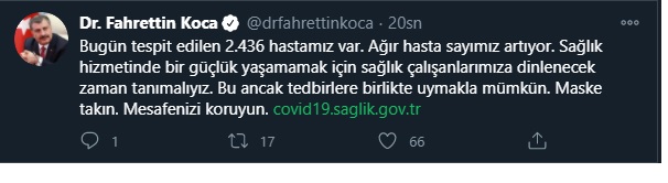 Fahrettin Koca‘nın sosyal medya hesabından yaptığı açıklama şöyle: