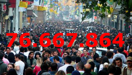 TÜİK verilerine göre, Türkiye nüfusu 2013 yılında 2012’ye göre binde 13,7 artışla 76 milyon 667 bin 864 kişi.