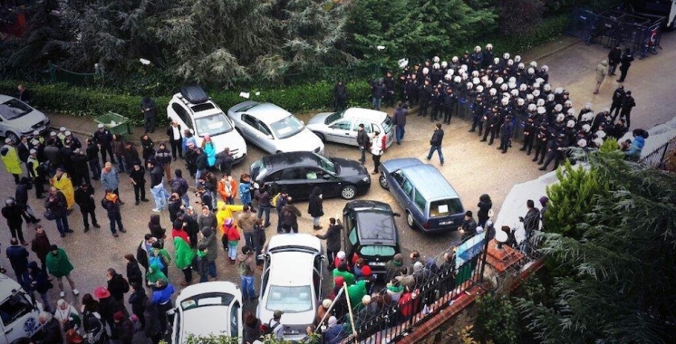 Polis kalkanlarla direnişçileri ittirerek yolun girişine kadar sürdü. Bu sırada mahalle sakinlerinden biri fenalık geçirdi.