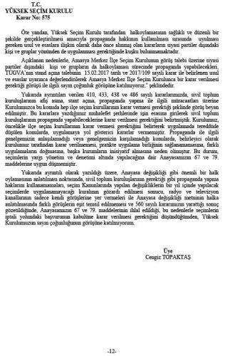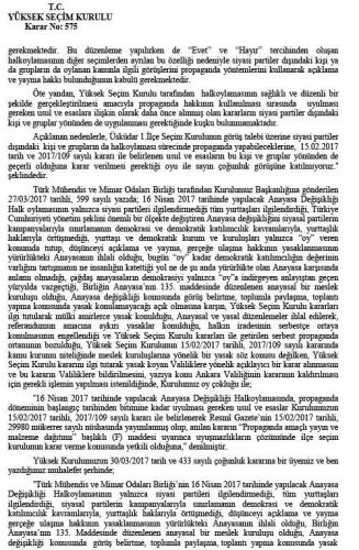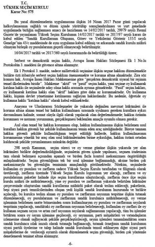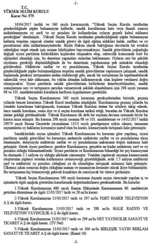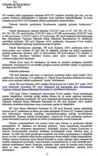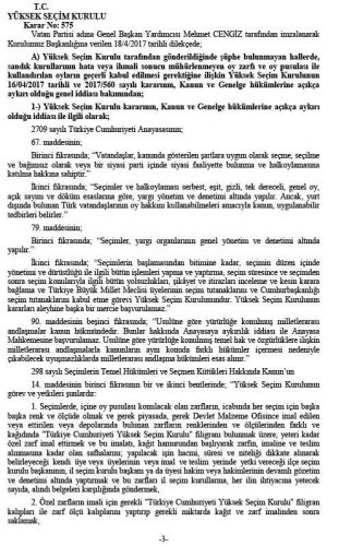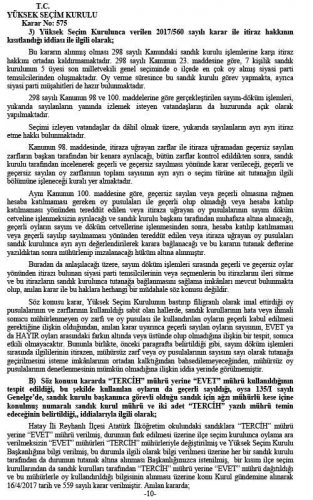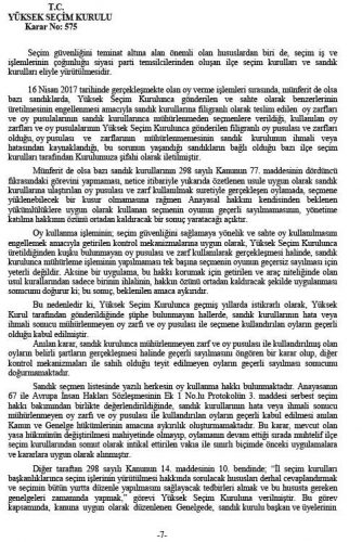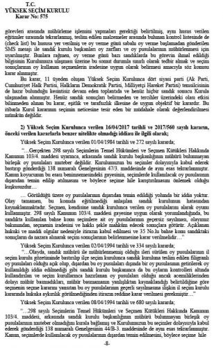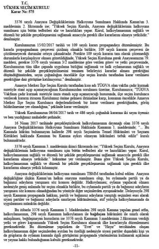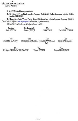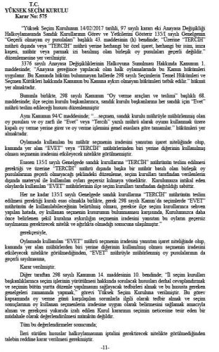 Yüksek Seçim Kurulu(YSK) , 16 Nisan 2017 Pazar günü yapılan anayasa değişikliğine ilişkin halk oylamasının, “tam kanunsuzluk” nedeniyle iptali istemiyle yapılan başvuruların reddi kararının gerekçesini açıkladı.