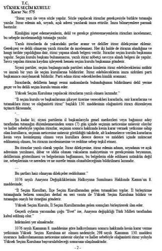 16 Nisan’da yapılan halk oylamasının açıklanmasının ardından CHP’nin yaptığı itirazlar reddedildi. İl ve İiçelerde seçim sonuçları ile ilgili YSK’ya yapılan 30 bin kişinini itirazı da gruplandırılarak karara bağlandı ve hepsi reddedildi.