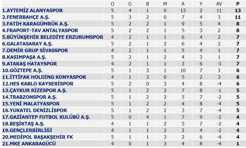 Yeni hafta öncesinde ligdeki puan durumu şöyle:
