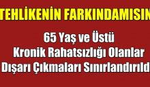 Genel 6 yıl önce 65 Yaş ve Üstü Kronik Rahatsızlığı Olanlar Dışarı Çıkmaları Sınırlandırıldı! İçişleri Bakanlığı, 21 Mart Cumartesi saat 24.00 itibariyle 65 yaş ve üstü, ayrıca kronik rahatsızlığı olan vatandaşların ikametlerinden dış...