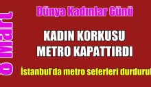 Genel 6 yıl önce İstanbul’da metro seferleri durduruldu İstanbul'da 8 Mart Dünya Kadınlar Günü yürüyüşü nedeniyle İstanbul Valiliği'nin aldığı karar doğrultusunda; M2 Yenikapı-Hacıosman metro hatt...
