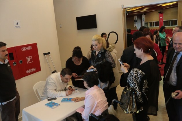 Katılımcılara engelli yaşamıyla ilgili önemli bilgiler veren İletişim Uzmanı Mehmet Kızıltaş’a program sonunda katılımından dolayı teşekkür edilerek, Sarıyer Belediye Meclis Üyesi Hayrettin Dereli tarafından plaket takdim edildi. Kızıltaş, program bittikten sonra Engellilerle 360 Derece İletişim kitabını okuyucuları için imzaladı.