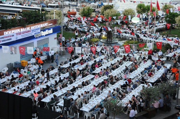 Yüzlerce Sarıyerlinin bir sofrada buluştuğu iftar yemeğinde vatandaşlar bir arada oruç açmaktan duydukları mutluluğu dile getirdiler. İmam Mehmet Derme’nin yaptığı yemek duasının ardından söz alan Mahalle Muhtarı Sinan Yüksel, ‘’Bu güzel Ramazan gününde bizleri iftar sofrasında buluşturan Başkanımız Şükrü Genç olmak üzere tüm emeği geçenlere teşekkür ederim’’ diyerek dostluk mesajları verdi.